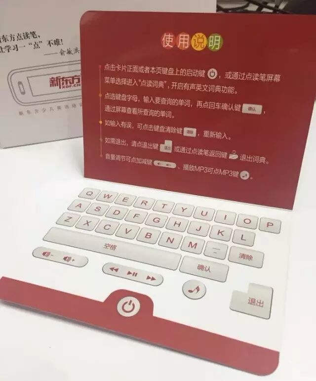 点读词典功能:点读查词功能需结合配套“有声点读词典功能卡”使用,可通过点选功能卡中虚拟键盘上的字母来实现查词功能。