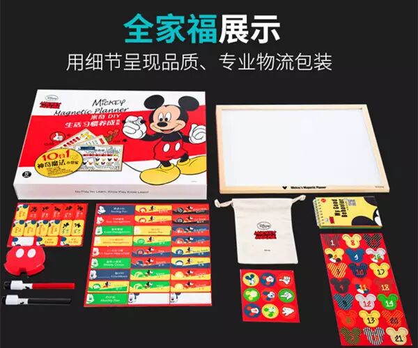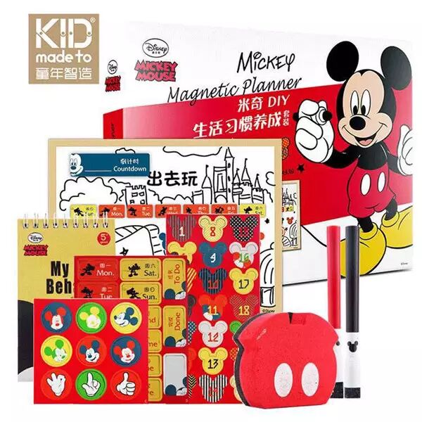 艾米粒个人微信:kidmadeto0099,敲门暗号:童年智造。分享我和妞的成长时光,学习体会,非诚勿扰。她叫麦子,她有个超级可爱的5岁儿子小阿土。她是个喜欢画画,喜欢给孩子讲故事、玩游戏的妈妈。2年前,她放弃了曾经干了10年的稳定白领工作,加入了[童年智造],从粉丝变成了创业团队的一员。她说她就想为孩子们做点事,想设计一些亲子产品能帮到父母,能让孩子喜欢。很多时候,设计产品的灵感都是从自己的孩子开始的。虽然小阿土超级可爱,但小男孩总免不了出现各种“状况”。玩了玩具总不记得收拾,晚上经常玩过头很晚还不睡觉,该吃饭的时候总不在状态……当她跟大家说起这些“问题”的时候,引起了几乎所有妈妈的“共鸣”。▶ “我们家那个已经读小学了,但自己的作业总会漏这漏那。“▶ “我女儿做任何事都拖拖拉拉,怎么催都没有用。”▶ “一直说要坚持阅读,但孩子只有4岁,不提醒就会忘记,我经常加班,也没办法每天陪伴,所以总养不成阅读的习惯。”于是我们开始探讨关于“习惯养成”这个话题,发现大多数父母们为了帮助孩子养成好习惯,用的最多的方法就是“大嗓门”。这话是不是很耳熟?但是,这显然并没有任何作用。该养成的习惯也没有养成,该坚持的也没能坚持。要知道这个问题的严重性在于,帮助孩子改掉一个坏习惯,要比建立一个好习惯难的多。麦子妈妈提出一个设想,能不能为父母们设计一个解决方案,融合正面管教的理论知识,用有效的实践方法,结合好玩的工具,真正帮助父母们解决用大嗓门解决不了的这些问题,帮助孩子建立更好的生活习惯。于是,麦子妈妈花了整整半年时间,思考、研究、探讨、与设计团队合作、找最好的生产商,打了无数次样,反复修正,拿小阿土当小白鼠,收集试用体验,完成严格的质量检测……为了让孩子们更喜欢,麦子特别选择了迪士尼的经典米奇形象([童年智造]可是迪士尼的正牌授权商),设计研发了这个[米奇生活习惯养成套装]。她说:我希望能给父母们提供一个完整的解决方案,不用大嗓门也能培养孩子良好的生活习惯,这里会有10个神奇魔法,用简单易行又有趣的方法鼓励孩子自己去思考,做自己行为的主人,潜移默化中教会孩子规划生活、自觉自律、体谅他人,成为更好的自己!结果就是,产品还没生产,办公室里的妈妈们全都要给自己预留一套。倒计时、21天好习惯、时间管理、事件管理、阅读计划、小小理财师、家务小帮手、周计划、月计划、米奇记功本——每个都是不可多得的正面管教好帮手。麦子妈妈就是用这一招制服了小阿土晚睡和拖拉的习惯,因为在小阿土自己制定生活作息后,就会时不时去看看自己现在该干嘛?接下来该做什么?完成一个任务还不忘把任务磁贴挪到“完成”那一栏。这个时候孩子就变成了“我要做”而非“要我做”。这是我经常会和小米一起完成的工作。我觉得对于从幼儿园过度到小学的孩子特别重要。给自己的生活和学习设定目标,并通过计划是实现。还有各种重要任务也能记录下来,不会忘记。家务是一种生活技能也是一种性格养成,适当地让孩子做一些力所能及的简单家务,让孩子学会生活,更有家庭责任感。我们贴心地列出了“2-15岁家务清单”,让孩子选择其中力所能及的几件,爸爸妈妈也各自挑选,都写在任务板上。完成后,在相应的日期下画上五角星。生日派对,全家旅行,周末野餐……这些生活中大大小小的事情,如果能让孩子主动参与会怎样?也许曾经的捣蛋鬼,破坏王都能神奇的变成生活的主人,变成你的小帮手。办公室的Ava妈妈尝试用这个方法鼓励3年级的儿子每天自己检查作业的完成情况,她说因为有了仪式感,并且一目了然很容易看到坚持的成果,儿子真的足足坚持了21天,然后自己感慨确实坚持一个习惯挺不容易的。麦子妈妈用这个方法鼓励小阿土自己收拾玩具,坚持一段时间后,小阿土哪怕在外婆家,也习惯性的把玩具都收拾整齐。除了数学启蒙,让孩子自己规划零花钱,是建立金钱观的第一步。合理的对自己的零花钱进行支配,懂的付出与所得,相信你家那个为了买玩具大吵大闹的孩子会变得不同。其实不止是欢乐出行,生日、新年、期末考、圣诞派对……每件事都可以倒计时!生活中需要一点仪式感,每倒数一天,就拿掉一块米奇磁贴,望着窗外扳着手指,盼星星盼月亮地在脑海中已经把愿望实现了一千遍,这何尝不是一种幸福? 用真心和细节去鼓励孩子,记录下孩子每一次的进步,调整自己每一次的情绪,都在这本小小的记功本上。你会在这个真正用心研发设计的[米奇DIY生活习惯养成套装]中看到:◆ 全面贴心的指导手册,不仅手把手教父母如何使用,更有超多育儿贴士;◆ 最优材质定制的磁性白板,米奇磁贴,白板笔等材料与工具;◆ 连磁贴收纳袋都考虑到了,孩子自己整理自己收纳;我们一直坚持,原创亲子产品,并不止是材料和工具,麦子妈妈花了整整半年时间,为的是找到真正能帮助父母解决问题的好方法。我和麦子妈妈都特别开心,今天[米奇DIY生活习惯养成套装]就能与大家见面了。我们特别希望更多家庭能用上这些解决方案,也期待大家能将你们的“米奇习惯任务板”和故事分享给我们。超值搭配:搭配《宝贝爱上幼儿园》(原价80元/套,即可享受52元/套!)由于微商城QQ客服系统特别不好使,所以如果遇到客服没有回复你的情况(一般不是故意