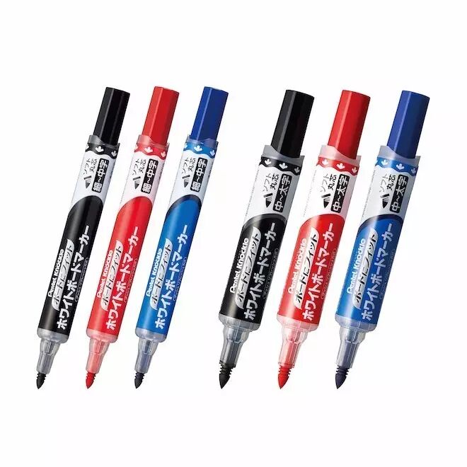 PENTEL的白板笔以其直液墨水装填系统出名,按压式的设计,即便不盖笔帽也可保持8小时笔尖不干。