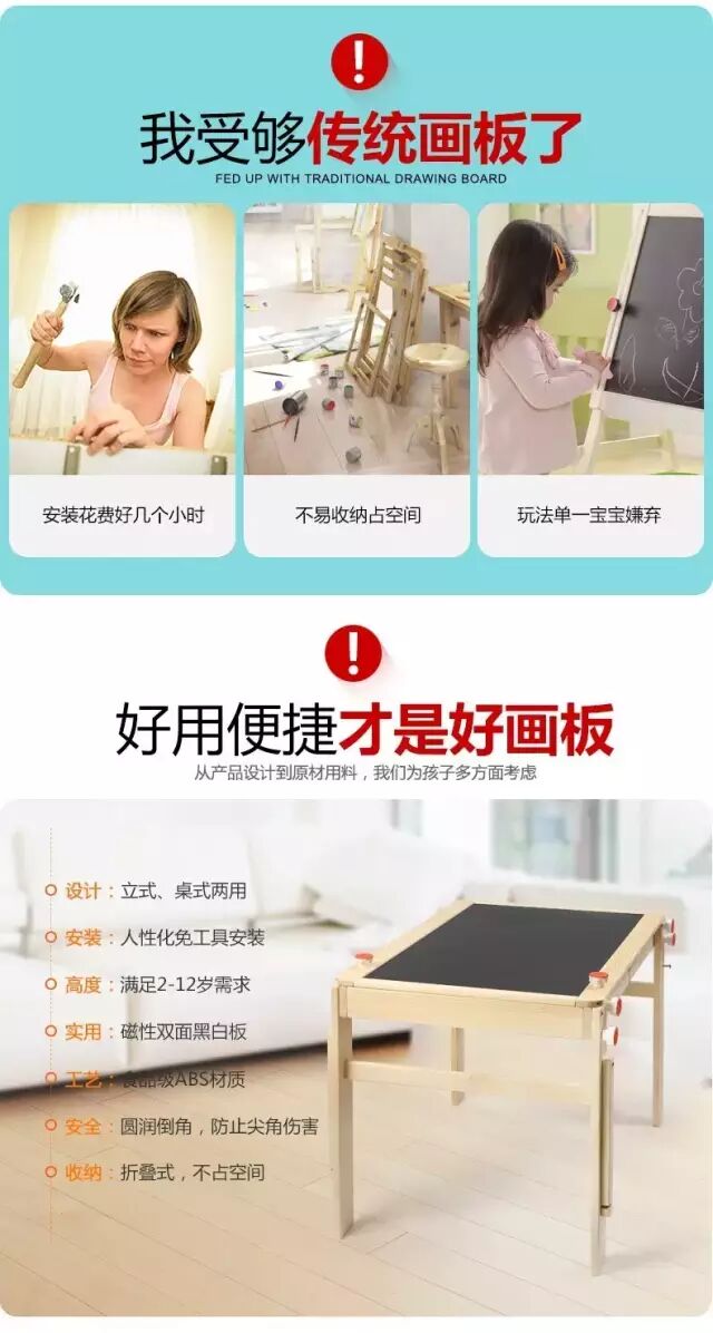 这款画板的优势就在于,它是可拆卸式双面画板(日本进口镀锌板材,木材是俄罗斯进口樟子松木)。