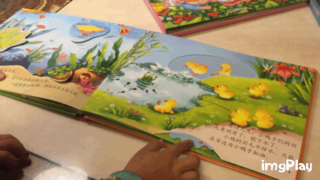 不论是插画还是3D立体页,都超美超美的,还有很多互动的小设计,孩子可以体会到池塘的生态环境:有水、有昆虫、有水生植物、有鱼虫……