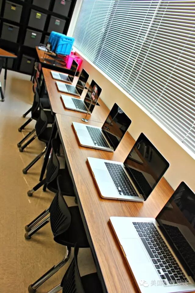 教室后方是电脑区。一年级的学生就已经配电脑了。。。很多课堂内容和考试都是在线的。
