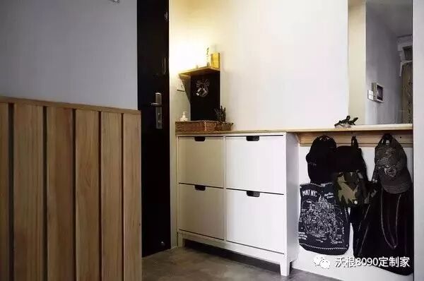 如果试想分开来不这么设计:一个单独鞋柜,一块落地穿衣镜,一个多头服装挂钩,光这几样在这么窄小空间组合起来就会显得十分零散,不但浪费空间,也没这么整体和美观。