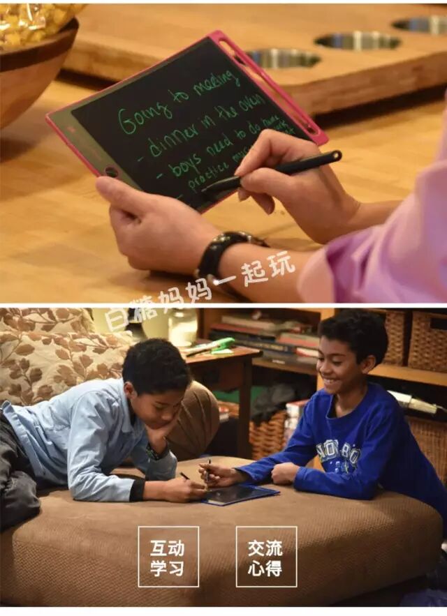 孩子们都具有丰富的想象力和创造力,很多孩子对新奇的东西会特别感兴趣,又或许突发奇想想要写写画画,这时家里、衣服很容易就变成灾难现场。这次白糖妈给大家带来了美国Boogie Board电子手写板,可以反复写5万次+的涂鸦、临摹、记事神器,妈妈们再也不用烦恼啦!