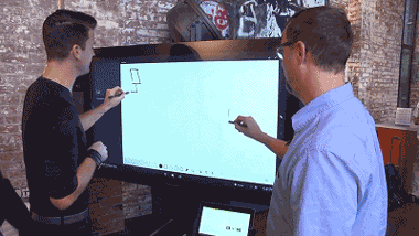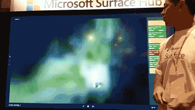 几年前我们中国的办公家具行业内出现过一款超前的视频会议系统,名字叫HUB,很多人应该都在广州的办公家具展上看到过。而微软今年也推出了这样一款视频会议系统 Microsoft Surface Hub(竟然也叫HUB,Hub的中文翻译是集线器),你可以在上面进行所有的白板操作,同时还能交互操作、视频、摄像、编辑等等。Surface Hub可以被安装于墙面之上,通过手、触控笔或者语音操控,可以取代目前会议室中的大部分设备。其可以用来召开电话或视频会议,或者也可以作为白板使用。通过动作感应摄像头和麦克风,其可以对用户在会议室中所处方位进行追踪,进而更好的处理音频和视频数据。
