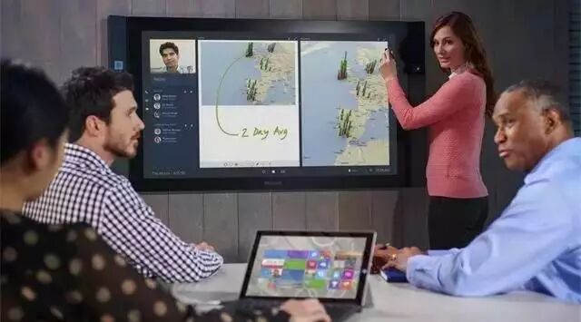 把写好画好的白板全部或局部地存储起来或发送邮件出去这个触屏显示器的显示极为流畅,用Google earth时可以很流畅地显示3D图像并触控翻转3D图像微软的这个Surface Hub 可以通过WiFi或者是USB接口与你的电脑笔记本进行链接,这样就能将小屏设备的画面投射到大屏幕上。Surface Hub拥有55寸和84寸两个版本。55寸Surface Hub搭载的是英特尔酷睿i5处理器,分辨率为1080P,预计零售价为6999美元(约合44850元人民币);84寸版搭载酷睿i7处理器,分辨率为4K,零售价为19999美元(约合128153元人民币)。Surface Hub会议系统预装的的定制版Windows 10,支持多点触控和数字墨水协作系统。两个尺寸的Surface Hub都包含了专属OneNote、Skype商务版和微软的Office系列软件,同时它们也都能运行来自Windows Store的Universal Windows应用。另外,这个系统中还包含了两根手写笔和一个无线键盘,同时拥有摄像头、麦克风、传感器、蓝牙以及WiFi模块。Surface Hub从去年7月1日开始接受预定,原计划于9月1日起在全球范围内出货,之后跳票了两次,终于在今年3月28日收到消息开始出货了。首发包括24个市场:美国,加拿大,澳大利亚,奥地利,比利时,丹麦,法国,芬兰,德国,爱尔兰,意大利,日本,卢森堡,荷兰,新西兰,挪威,葡萄牙,西班牙,新加坡,卡塔尔,瑞典,瑞士,阿联酋和英国。目前暂无中国市场的上市信息。从介绍上看,微软的这款Hub相较于之前中国的HUB好像也没有太多创新的东西,只可惜中国的HUB在这两年的展会上好像没有再出现了!