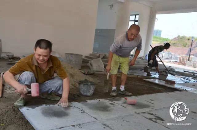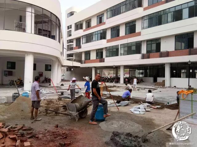 最近,工人们都在加班加点赶工期,确保完成各项收尾工作,保证秋季开学。