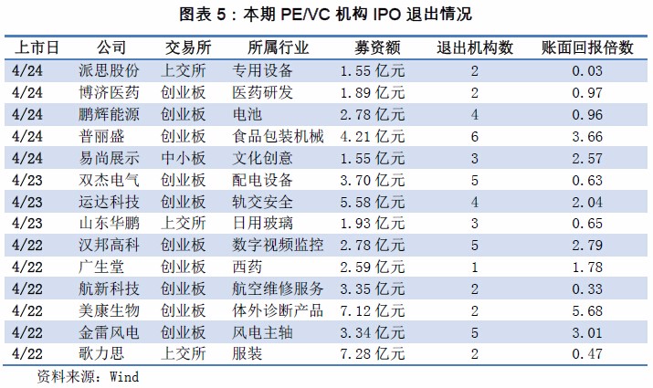 4月17日,泰亚股份(002517.SZ)通过发行股份购买资产收购恺英网络100%股权,并被恺英网络借壳,泰瑞麟一号基金、经纬创达基金、九彤投资、海通开元四家机构获得退出,非别获得1.3986亿账面退出金额;账面投资回报率为0.049倍、无、0.0395倍、无。