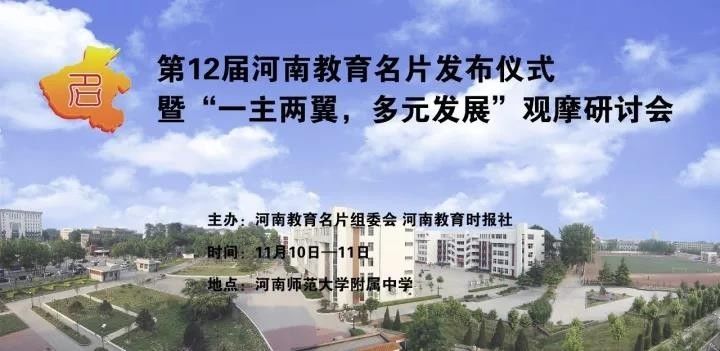 小编的话:11月10日、11日,第12届河南教育名片发布仪式暨“一主两翼,多元发展”观摩研讨会将在首届河南教育名片、河南师范大学附属中学举行。10所河南教育名片学校的校长将逐一做办学经验的分享,亮点频频、精彩多多,值得期待——