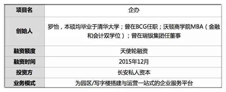 同月,企办获得425万元的天使轮融资,由长安私人资本投资。