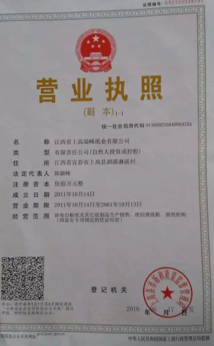 瑞峰纸业有限公司位于江西省宜春市上高县泗溪镇320国道傍,东接南昌、高安,西接宜春、万载。临近大广高速、昌栗高速,交通便利。