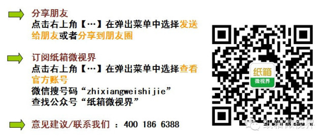 【注】“纸箱微视界”微信公众平台由世界领先的展览及会议活动主办机构、“中国国际瓦楞展”主办方励展博览集团和中国包装行业领先资讯服务供应商、《纸箱世界》总策划上海美印文化传播有限公司联合开发运营。“纸箱微视界”将于每天上午7:45呈现纸箱行业最即时专业资讯。励展博览集团和上海美印文化强强联袂,以“传播业界正能量,触动行业新发展”为宗旨,立志打造一个纸箱包装行业领先资讯发布新媒体平台。如果您有任何新闻线索,请及时联系编辑部:
