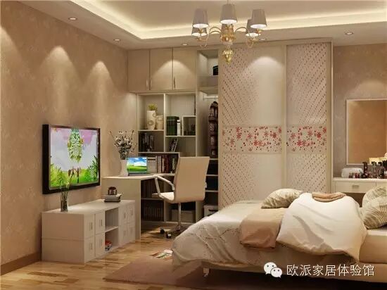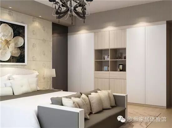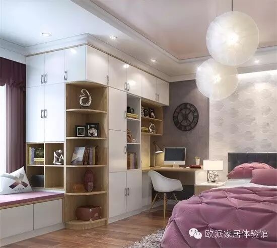 多功能组合柜造型简约时尚,为卧室注入一丝浪漫气息;巧妙利用空间设计一体式转角组合柜,极大满足空间多种功能需求,使卧室更加整洁有序。