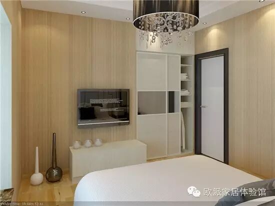衣柜、电视柜的巧妙组合,将整面墙都利用起来,使卧室化身收纳神器,满足主人的多种使用需求。