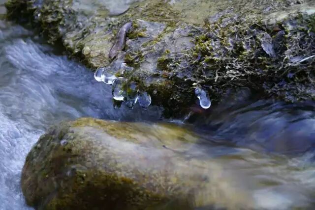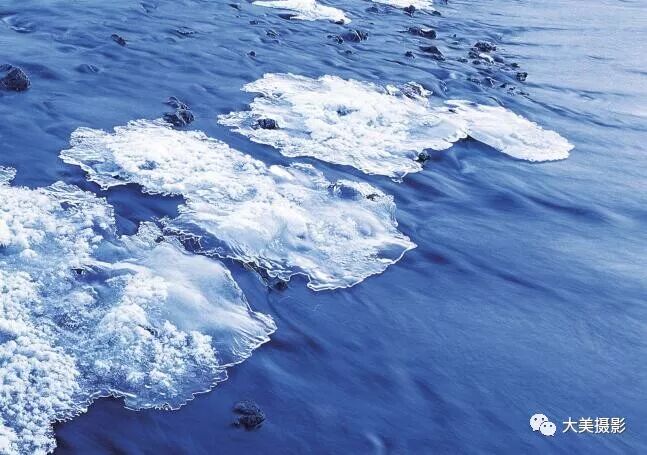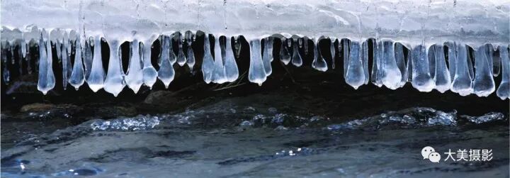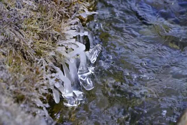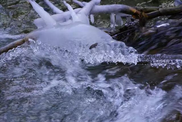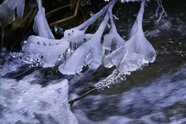 晶莹剔透的冰凌,悬挂在流动的湖面上,泛起氤氲的水雾,像圣洁的雪莲花,动静间的回旋,让我无法去描绘这无暇的晶莹,深深地沉浸在这单一的梦幻般的色彩中。