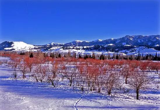 前景的选择对于冬天的拍摄而言,前景的选择会成为保证画面整体效果的重要条件。相对于色彩斑斓的春天,冬天景物的颜色还是略显单调,因此,我们要尽可能的放大目标景物,或是以色彩鲜艳的物体为核心,这样就可大大避免画面的单调。以冬梅为例,拍摄大面积的梅花盛开,摄影技术不是很专业的朋友很容易就会将画面拍摄为茫茫白雪中点缀着星星点点的物体,画面很乏味。但如果只拍摄一个枝杈上的几朵梅花,效果则会好得多。