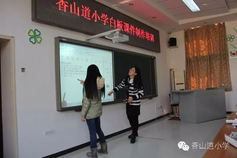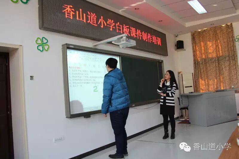 今天下午,香山道小学在上学期多次对教师进行白板使用的培训的基础上,再一次聘请白板厂家的专业培训人员,对全体教师进行了白板课件制作的培训。培训中,讲师通过演示、示范和丰富的例子,向教师们介绍了SMART软件的各种功能及使用方法,培训后,针对本次的培训内容,部分教师也走上讲台,在讲师的指导下,进一步熟悉各种功能的使用。本次培训,教师们在使用的基础上,有针对性的学习,更加熟练地掌握了功能的使用,为今后多媒体设备在教学中的广泛应用打下了基础。